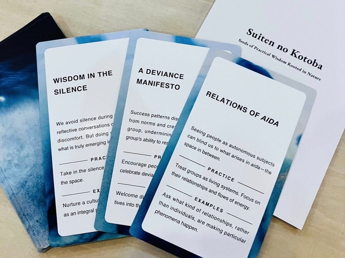 The Words of Suiten are practical wisdom rooted in nature and ecosystem that has emerged through Ecological Memes’ process of exploration. The Cards are designed to help you apply these tips in a wide range of contexts including your everyday life and organizational development.